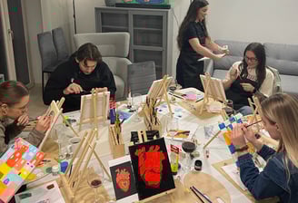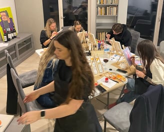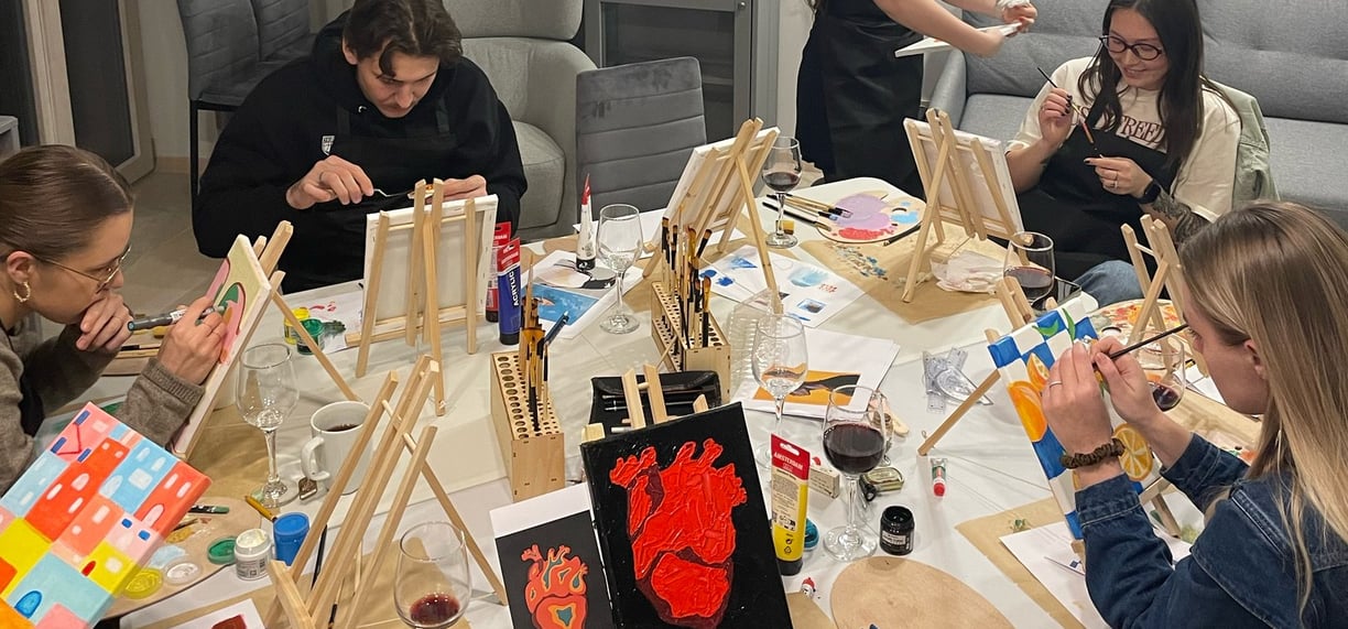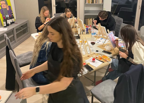 Stilinga meno studija Kaune, kur kūryba, vynas ir bendravimas susijungia mažose grupėse, suteikdami unikalią patirtį ir galimybę atsiskleisti.